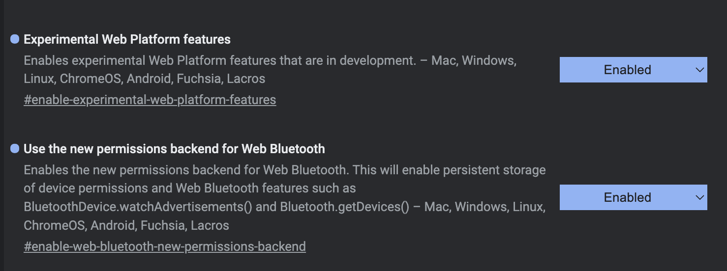 Additionally, there are some Browser Bluetooth flags that need to be enabled: