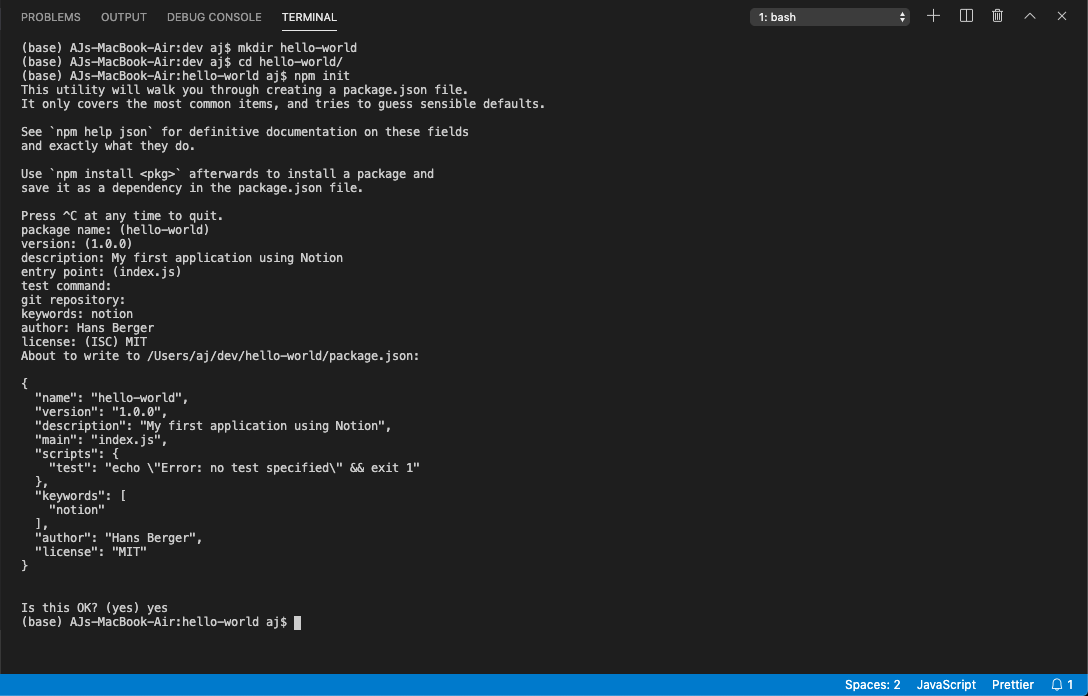 package name: (hello-world)